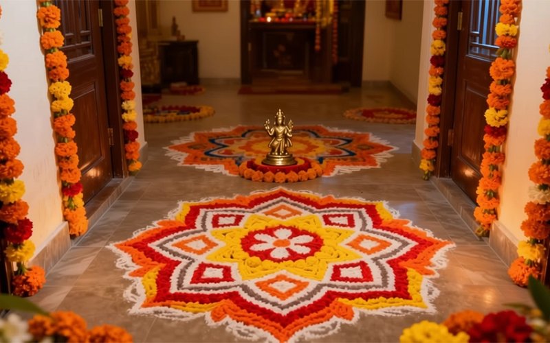 • Floral rangoli and garlands