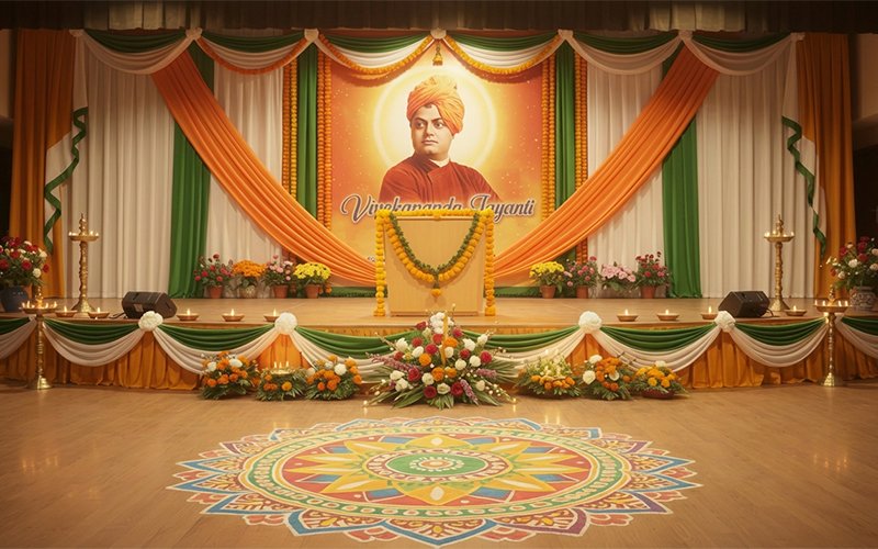 This service suits all events celebrating Swami Vivekananda Jayanti. Whether you are organizing a school program, a cultural gathering, or a community event in Kolkata, our décor enhances the venue and creates a respectful atmosphere for audiences of all ages.