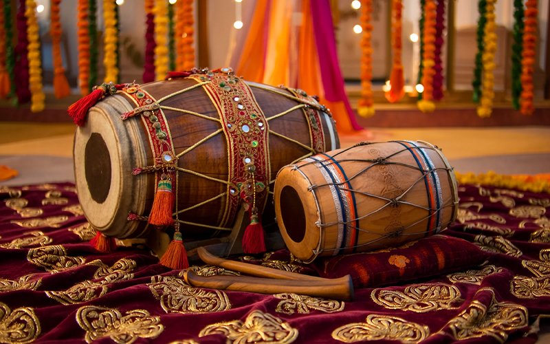 • Vibrant themed dhol setup