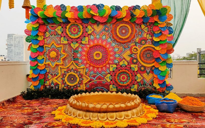 Our Haldi decoration in Kolkata is ideal for ceremonies that need bright colors, simple layouts, and joyful setups. The designs suit indoor and outdoor venues and support both traditional and modern styles. Each event gets a custom theme to match family preferences. We help create a warm and festive atmosphere.